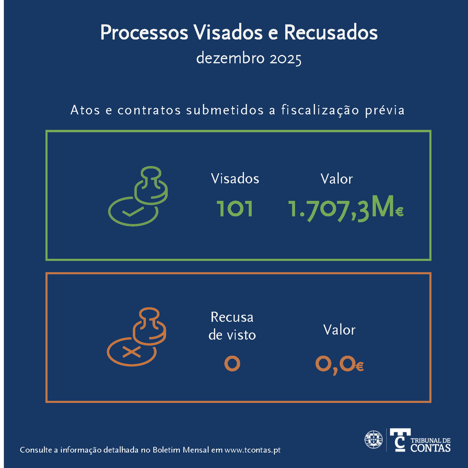 Consulte o Boletim Mensal de Fiscalização Prévia de dezembro e respetiva infografia.